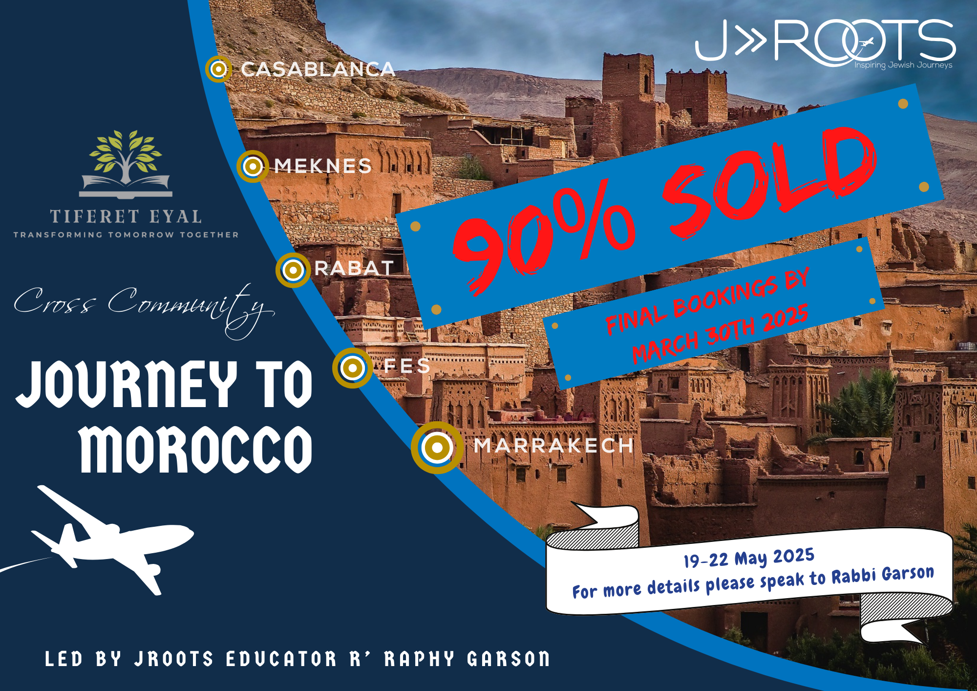 We are fortunate to have a Rabbi who partners with JROOTS, bringing deep knowledge and sensitivity to guiding our community on meaningful, life-changing journeys. In just the past 18 months, we’ve had the privilege of travelling together to Poland and Morocco — experiences that left a lasting impact on all who took part.
